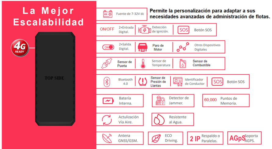 Con la mejor tecnología, GCNTOP es un rastreador de GPS 4G altamente competitivo, desarrollado para el seguimiento de vehículos, motocicletas, maquinaria pesada, camiones, lanchas y autobuses por mencionar algunos, Le ofrece detalles de seguimiento en tiempo real, como ubicación, ruta, flashback, etc., incluso en entornos difíciles. Es compatible con el corte remoto de combustible / alimentación y le brinda información sobre el estado de ignición. Donde quiera que vaya, sus notificaciones de alerta instantánea le permiten reaccionar de manera acorde e inmediata.